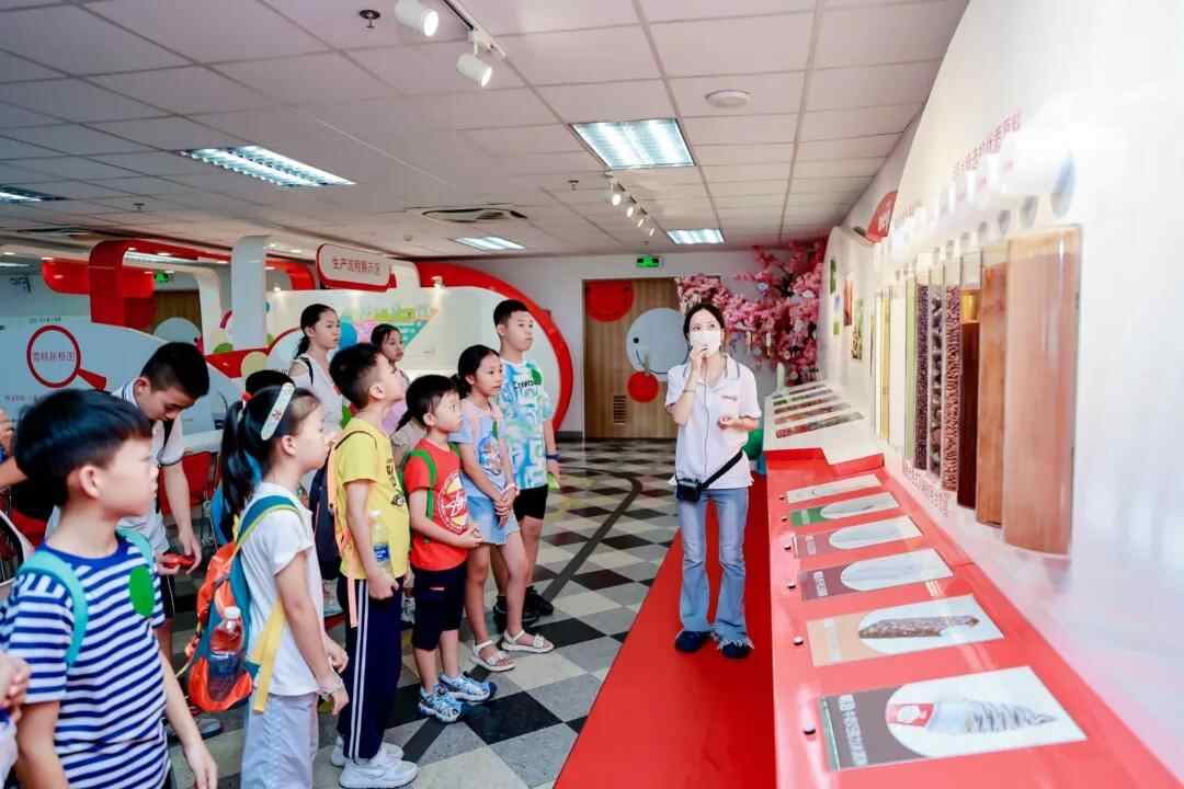 孩子们第一站乘车前往广州市“湾区儿童爱国行.广州”家庭亲子研学线路打卡点——明治雪糕(广州)有限公司。观看企业发展历程视频,参观明治雪糕原料区、生产线,掌握雪糕生产的奥秘,看着一桶桶牛奶做成一个个圆滚滚的雪糕,孩子们兴奋得手舞足蹈。最后,在雪糕屋,每个孩子喜提一支新款雪糕,顿感37度的夏天不再炎热。