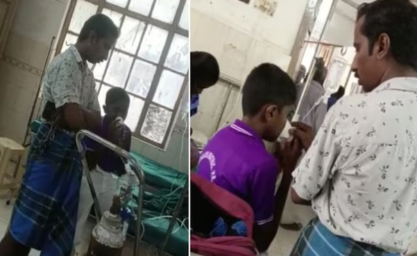 印媒称,这段视频摄于泰米尔纳德邦一家政府医院。一位父亲因年幼的儿子呼吸困难而将他送到医院里。视频画面显示,这位父亲将一个戳了洞的纸杯连接到氧气瓶上,用它作为儿子的临时面罩。