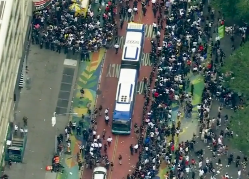 海外网8月5日电据美国《纽约邮报》报道,当地时间4日,美国一名网络主播在纽约联合广场举行了一场赠品活动,未料演变为大规模骚乱,人群向警方投掷石块、铁铲,现场一片混乱。