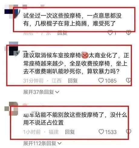大规模推广的按摩椅挤占了普通座椅的空间,一些旅客反映在部分车站,想找个普通椅子坐都难,只能坐在共享按摩椅上。一些疏于维护的共享按摩椅的卫生问题也随之凸显。