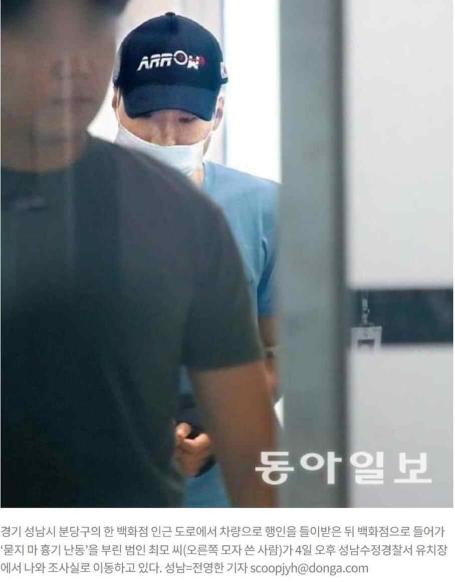 当地时间5日,在这起无差别行凶案发生后,崔某首次出现在媒体和公众面前,他戴着帽子,穿着一件T恤,在警察的陪同下来到水原地方法院城南支院。报道称,他的脸上没有任何表情变化,一直低着头走向法庭。