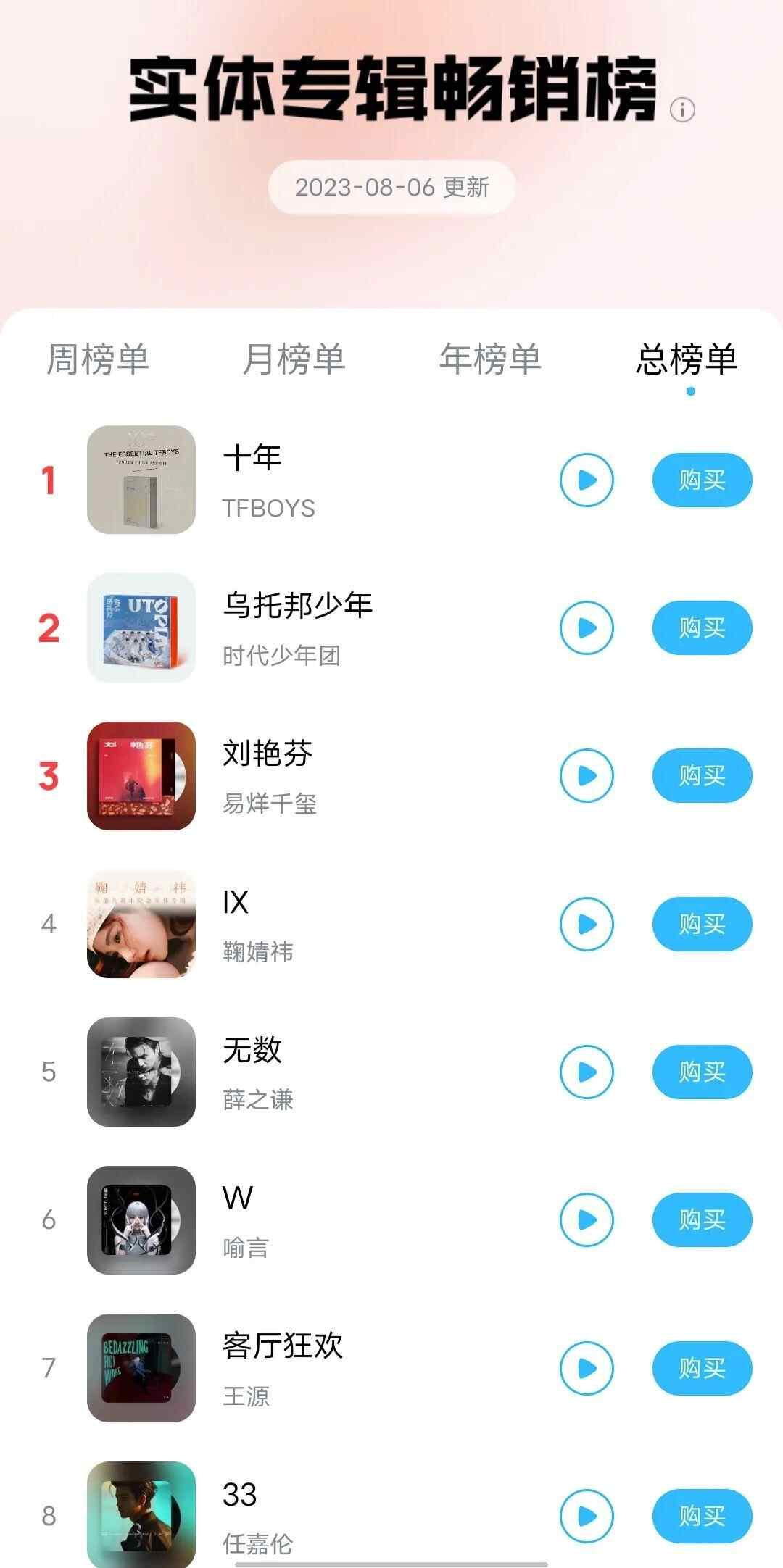 此外,TFBOYS还在8月5日推出了纪念专辑的预售,售价168一张,要到11月才能陆续发货。尽管无法看到具体销售数量,但已经有不少粉丝晒出了购买记录。在平台上,该专辑已经排到了年度榜销售第一。