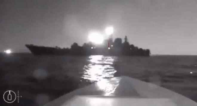 从乌克兰军方公布的视频显示,乌军自杀式无人艇瞄准一艘锚泊在海上的军舰并高速冲去,从军舰轮廓可以看出,这是一艘登陆舰,在撞向军舰后画面消失,疑似已经引爆。从外媒公布的袭击后视频和卫星图像来看,一艘登陆舰发生了倾斜,最后被拖入港口进行维修。