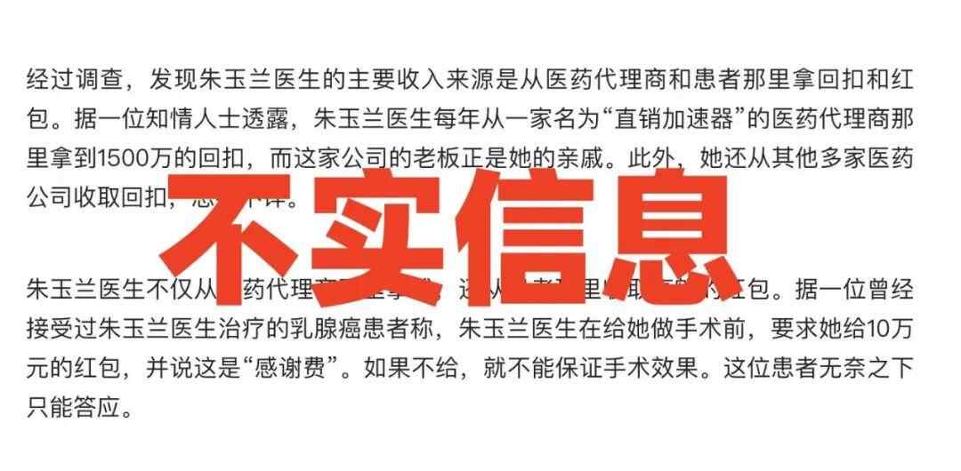 常州市广播电视台微信公众号“中吴网”当日15时许刊发的《严重失实!乳腺外科医师朱某某相关谣言》一文指出,近日,有人在社交网络、自媒体平台发布严重失实信息,引发大范围传播扩散,谣言不断升级发酵,造成极其恶劣的社会影响。