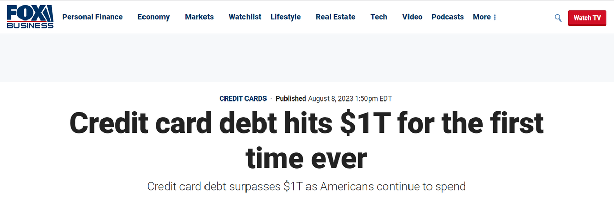纽约联储周二报告称,进入夏季,美国人越来越多地转向使用信用卡来维持生计,总余额首次超过1万亿美元,这是自2003年美联储数据有记录以来的最高水平。