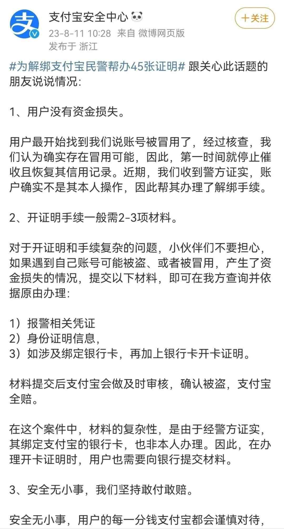 支付宝花呗莫名出现、1.3万元逾期欠款、怀疑被人冒用、为解绑支付宝民警帮办45张材料……