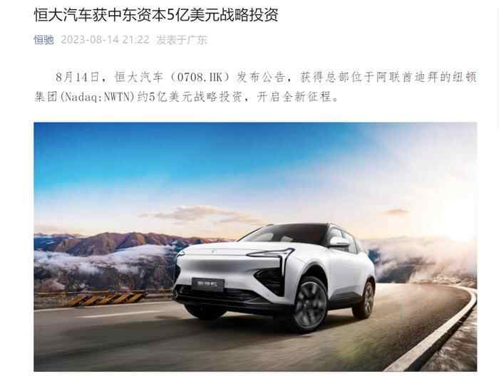 8月14日晚间,纽顿集团发布对恒大汽车进行5亿美元的战略投资,这一重磅新闻立即冲上各大网站热搜。