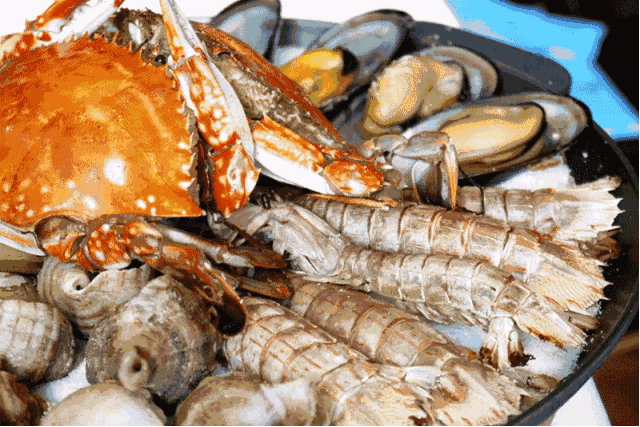 清蒸大虾、螃蟹 、虾姑、椒盐鱿鱼、豆豉仓鱼 、干煎马鲛、蚝仔煲汤、白灼东风螺、鲍鱼煲鸡汤……海里的“宝藏”通通上桌,光听名字是不是已经垂涎欲滴了?