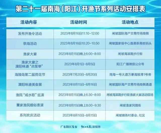 8月15日至16日,第二十一届南海(阳江)开渔节在海陵岛开幕,为你奉上一场丰盛的渔家文化盛宴。