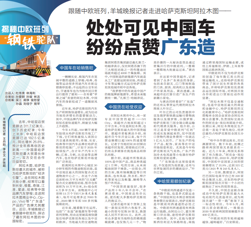 阿拉木图,哈萨克斯坦最大的城市,被称为哈萨克斯坦的“经济引擎”。走在阿拉木图大街小巷,经常可以看到长安、极氪、奇瑞、江淮、星途、哈弗等中国品牌汽车穿梭;走进阿拉木图商业中心,Oppo、Vivo等“广东造”产品的广告牌尤其醒目。近日,羊城晚报记者跟随中欧班列,探访了藏在阿拉木图的中国秘密。
