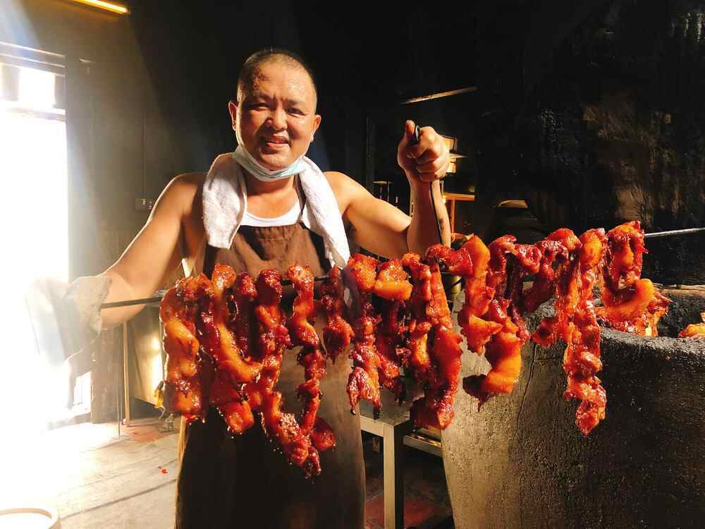 虎山金巢琵琶鸭的诞生源于百年之前,因烘烧后外形酷似民乐器“琵琶”而得名。原料就地取材于田间地头,其制作技艺成为珠海非物质文化遗产。它外脆里嫩,口味甜中有咸,层次分明,肥而不腻还隐约有果木香气。蘸上酸甜的梅果酱更多了份爽脆的口感。据说,这里用的酱料都是师傅特调,别地无处可寻。