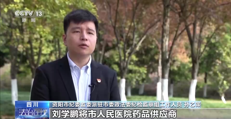 资阳市纪委监委派驻市委政法委纪检监察组工作人员孙乙策:在这次所谓的改革中,刘学鹏将市人民医院药品供应商从最多时候的200余家,压缩到与其有利益关联的7家,并最终缩减至5家。医院药品购销利益格局被打破重构。