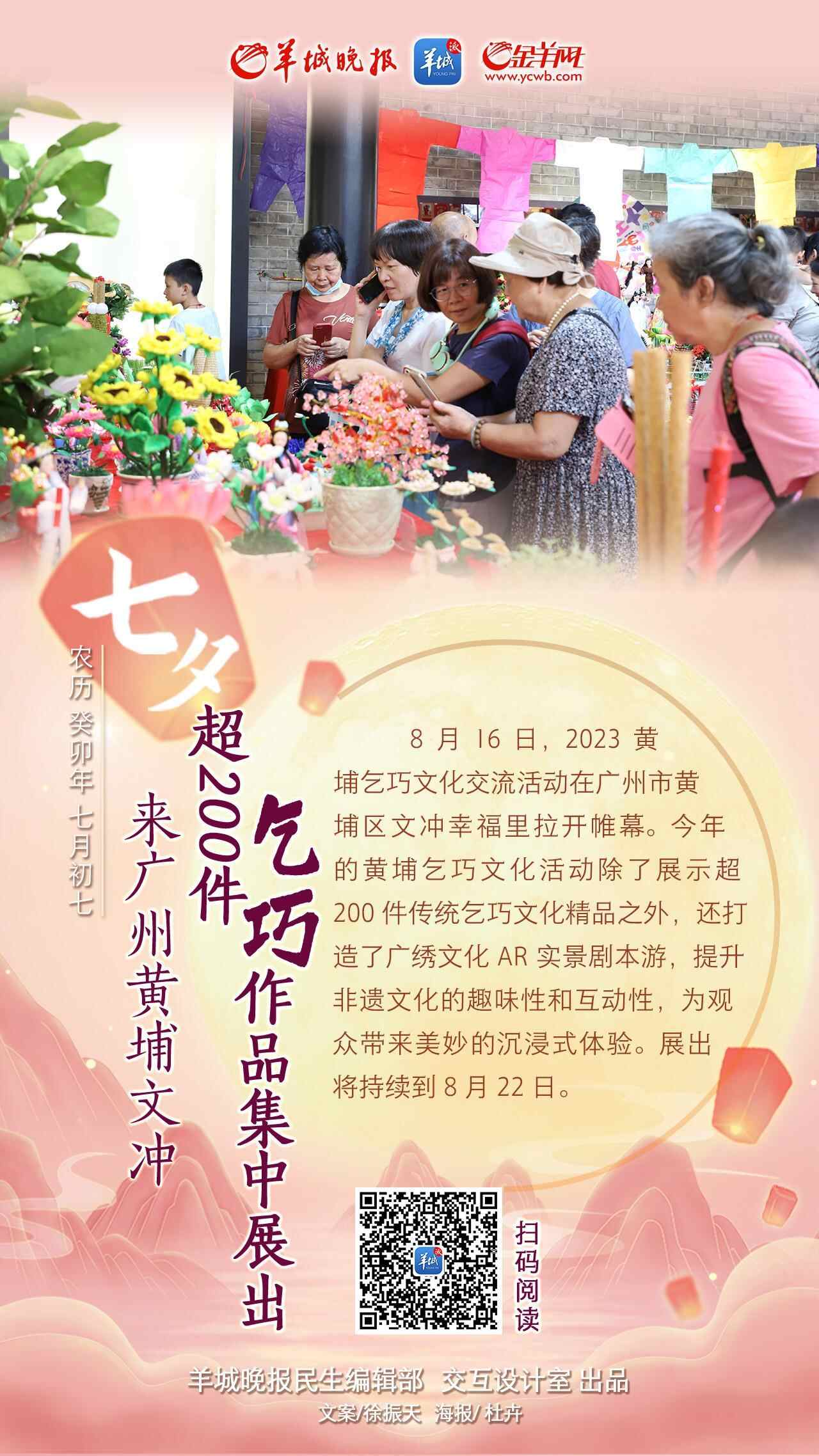 8月16日,2023年黄埔乞巧文化交流活动在广州市黄埔区文冲幸福里拉开帷幕。记者了解到,今年的黄埔乞巧文化交流活动除了展示超200件传统乞巧文化精品之外,还打造了广绣文化AR实景剧本游,提升非遗文化的趣味性和互动性,为观众带来美妙的沉浸式体验。