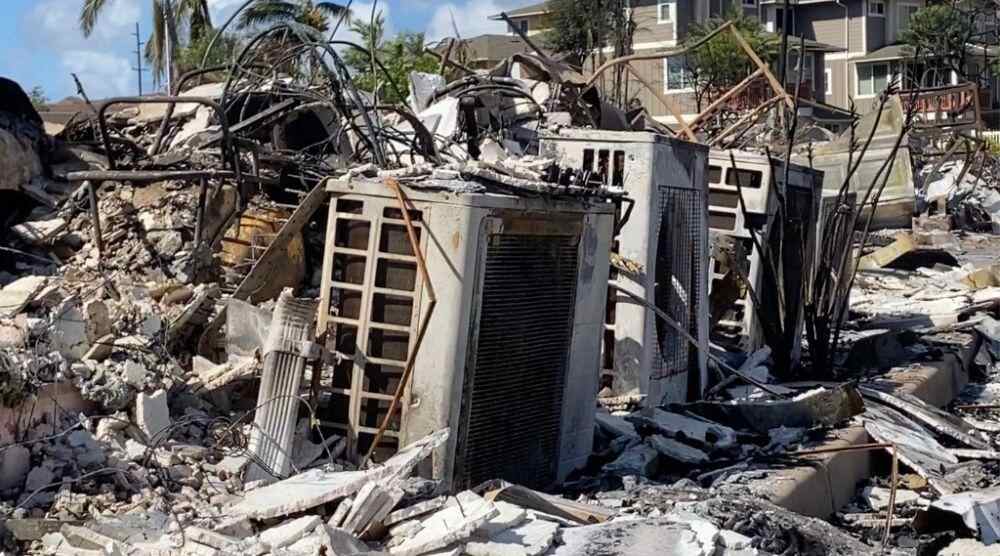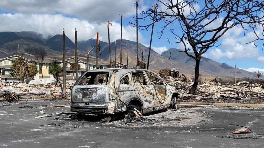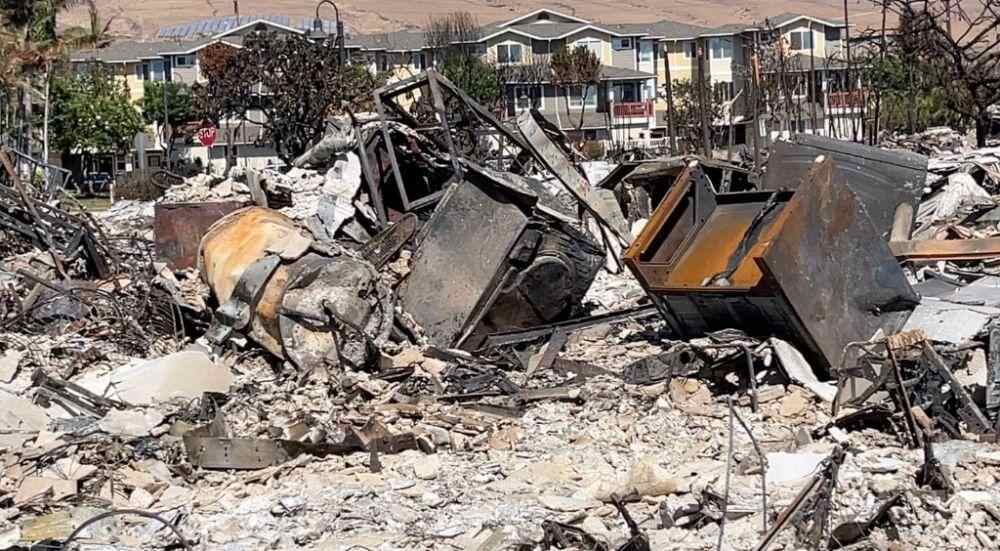 这是8月14日在美国夏威夷州毛伊岛拉海纳拍摄的野火烧毁的残骸。新华社发(杨平俊摄)