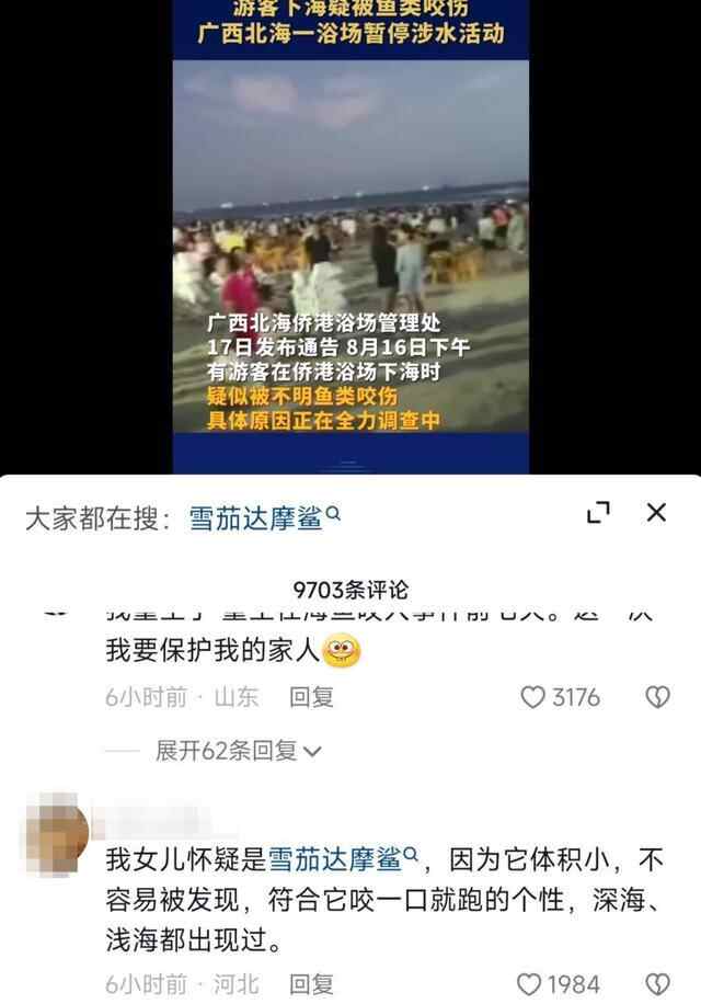 8月16日,广西北海侨港海滩有游客下海游玩时,疑被不明生物咬伤。网传视频中,北海侨港海滩有安保人员喊话:“海边突发不明物种伤人事件,为了您的安全,请所有游客立即上岸。”