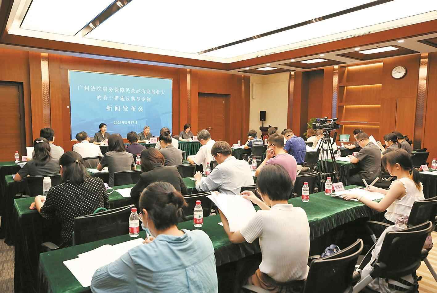 广州作为民营经济大市,民营经济健康发展对稳定宏观经济大盘具有重要作用。8月17日,广州市中级人民法院举行《广州法院服务保障民营经济发展壮大的若干措施》(以下简称《措施》)及典型案例新闻发布会,公布18条服务保障民营经济发展壮大的具体措施,为民营经济发展壮大吃下司法“定心丸”。