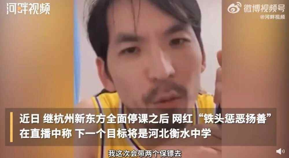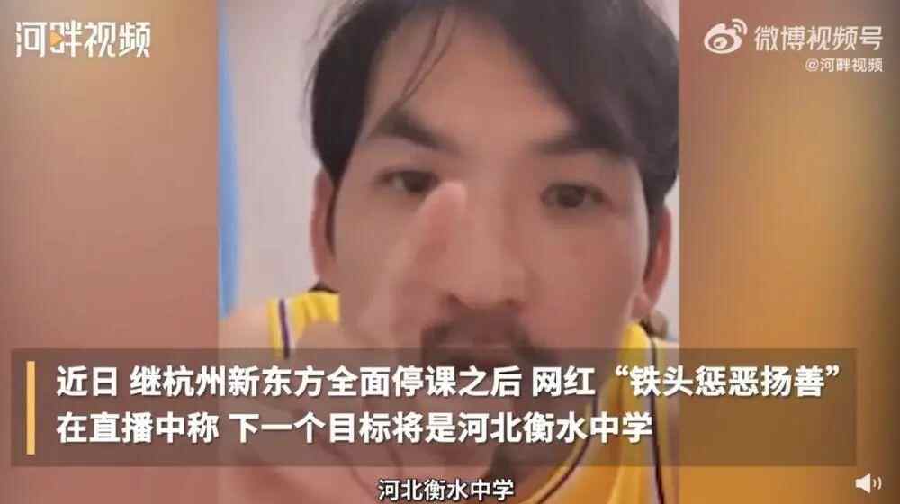 近日,网红“铁头惩恶扬善”(下称“铁头”)举报杭州新东方违规补课致其全面停课一事引发关注。8月16日,据华商网报道,“铁头”日前在直播中宣布,下一目标为河北衡水中学,称“打服为止”。