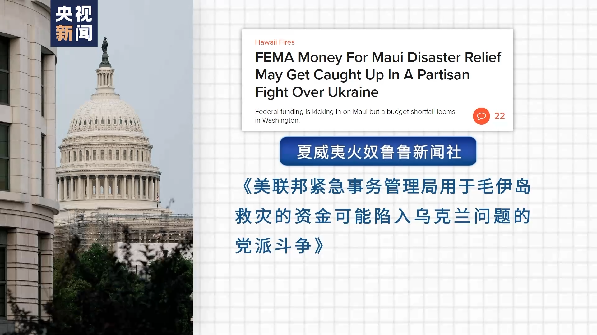 截至目前,毛伊岛上的火势仍然没有得到完全控制,但灾后重建前景却早已被淹没在了一片党争口水中。据夏威夷当地媒体火奴鲁鲁新闻社日前报道,受灾地区目前能指望的主要重建出资方就是联邦紧急事务管理局,但该机构目前面临严重的资金短缺。美国政府曾要求国会批准额外拨款,其中夏威夷每户受灾家庭平均可得到700美元补助,而美国政府要求国会批准给乌克兰的资金支持却高达241亿美元。