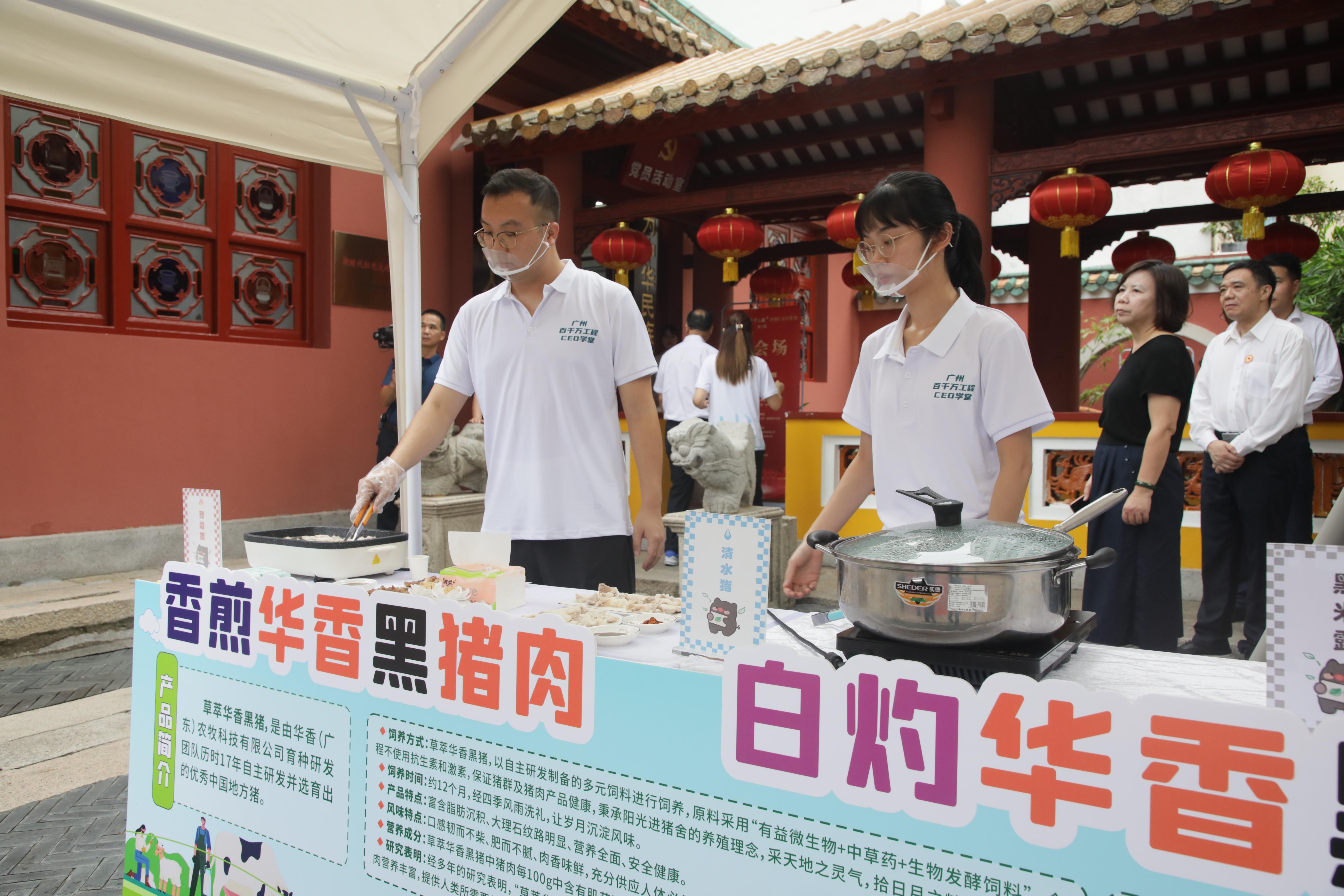 活动上,广东省 “百千万工程” 智库专家顾益康、中国科学院院士张启发、广州乡村振兴控股集团有限公司总裁毛杰、广东农工商职业技术学院财经学院副教授陈汉平四位专家获颁广州市 “百千万工程”顾问的聘书。现场还展示和品鉴了来自莲花出水农科小镇的华墨香黑米、草萃华香黑猪肉以及广州市各区推荐的番石榴、迟菜心面、腊味、预制菜等优质特色农产品。