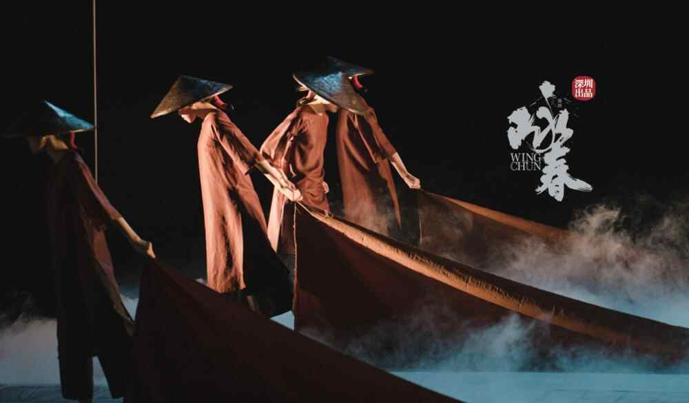 除了表演本身,给观众带来视觉享受和文化震撼的还有演员服装。有着一千多年历史的香云纱,通过“深圳设计”穿在不同角色身上。香云纱是中国一种古老的手工制作的植物染色面料,也是国家级非物质文化遗产。它汲取了天然的染料,阳光的温度,泥土的气息,每一匹都是大自然与人共同创作的艺术品,让人过目不忘。《咏春》导演、舞坛“双子星”韩真、周莉亚在舞剧创作初期,就到国家级非物质文化遗产“香云纱染整技艺”的制作地采风,并将“香云纱染整技艺”搬上了舞台,创作成剧中展现乡愁的片段。这也是历史文化背景为艺术家们的创作带来的无限灵感。