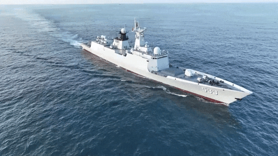 台岛北部,多艘驱护舰艇采取高速机动和隐蔽接敌方式占领有利阵位,对“敌”海上目标实施模拟打击。