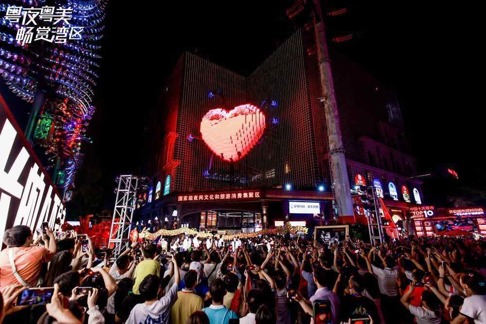 8月18日晚的佛山创意产业园,门前车水马龙,园内人山人海。“粤夜粤美 畅赏湾区”广东省2023年夜间文化和旅游消费促进主会场启动仪式在此举行。