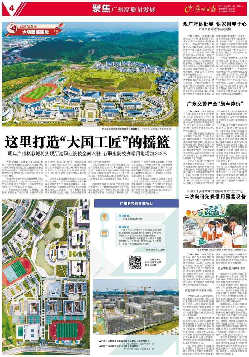 为进一步改善广州职业教育场地分散、用地紧张的状况,广州市委市政府决策建设广州科教城,致力于打造出一处南方职教的“高地”,一个“大国工匠”的摇篮。