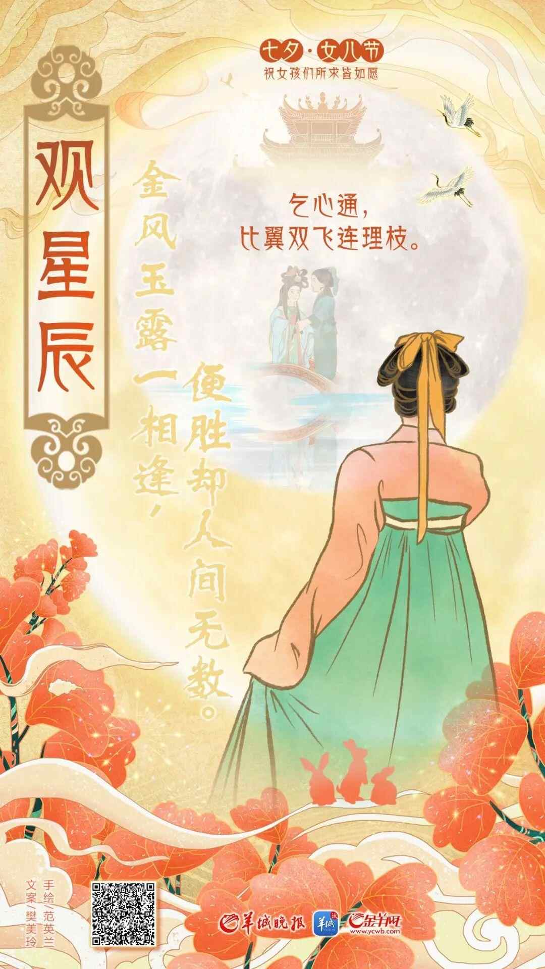 如今,现代女子走出闺阁方寸之地,在万千世界中施展才华,实现自我价值。而乞巧这一传统习俗,也在代代传承中拓宽内涵,焕发出越发蓬勃的生机活力,成为了一个融合祈愿爱情如意、家庭团圆、生活美好、事业圆满等多元丰富的盛大节日。