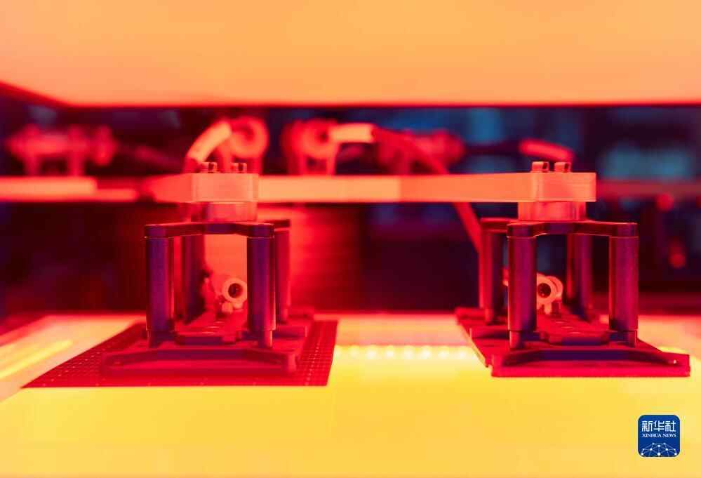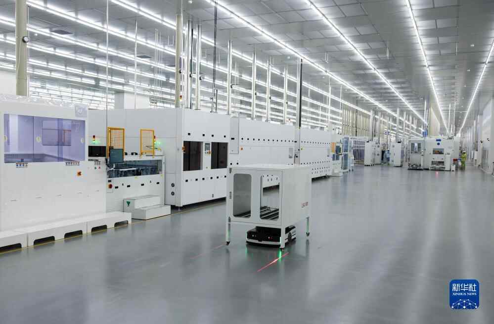 8月22日,在四川省丹棱县经济开发区的眉山琏升光伏8GW高效异质结电池项目电池车间,设备对硅片进行加工。