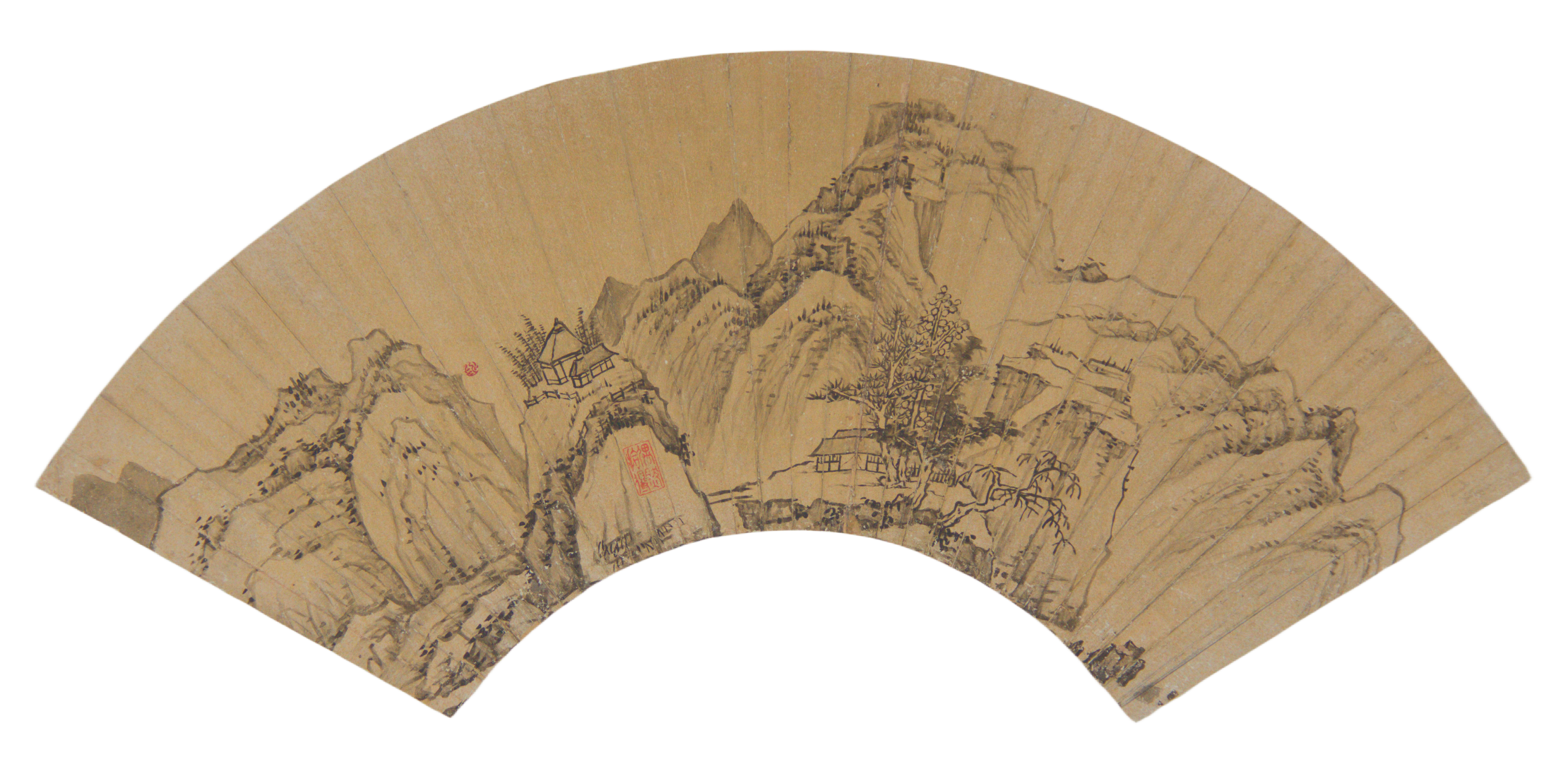 △书画扇面主要有两种形制:一为纨扇(团扇),二为折扇。