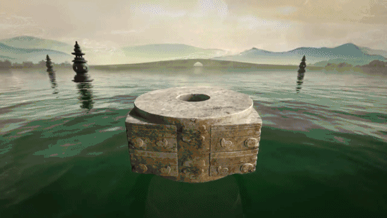 △炬冠,以玉琮语意为特征,方圆相融,昂然而立;出火口设计源自“琮”最早的甲骨文字形,寓意“光在内周而复始”(图片来源:杭州第19届亚运会网站、钱江晚报)