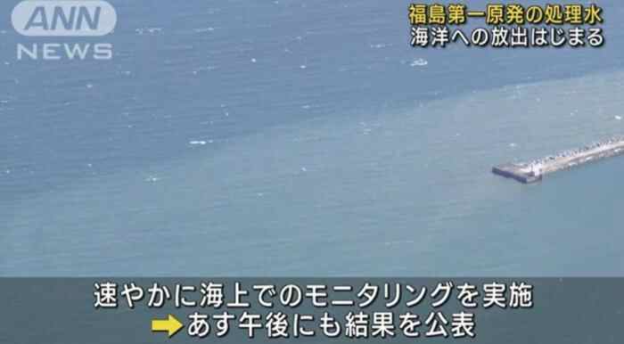 当地时间24日下午1时许,日本将福岛核污染水排入大海。图片来源:日本朝日电视台视频截图