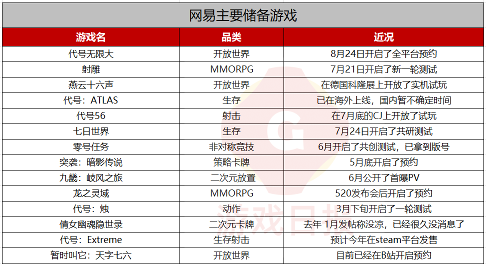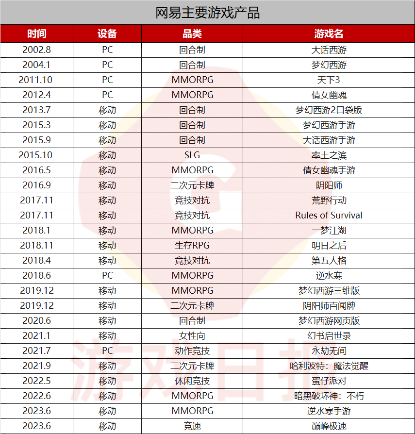 目前总计26款,涉及6款端游,20款手游(基于2022年网易财报与2023年动态整理)