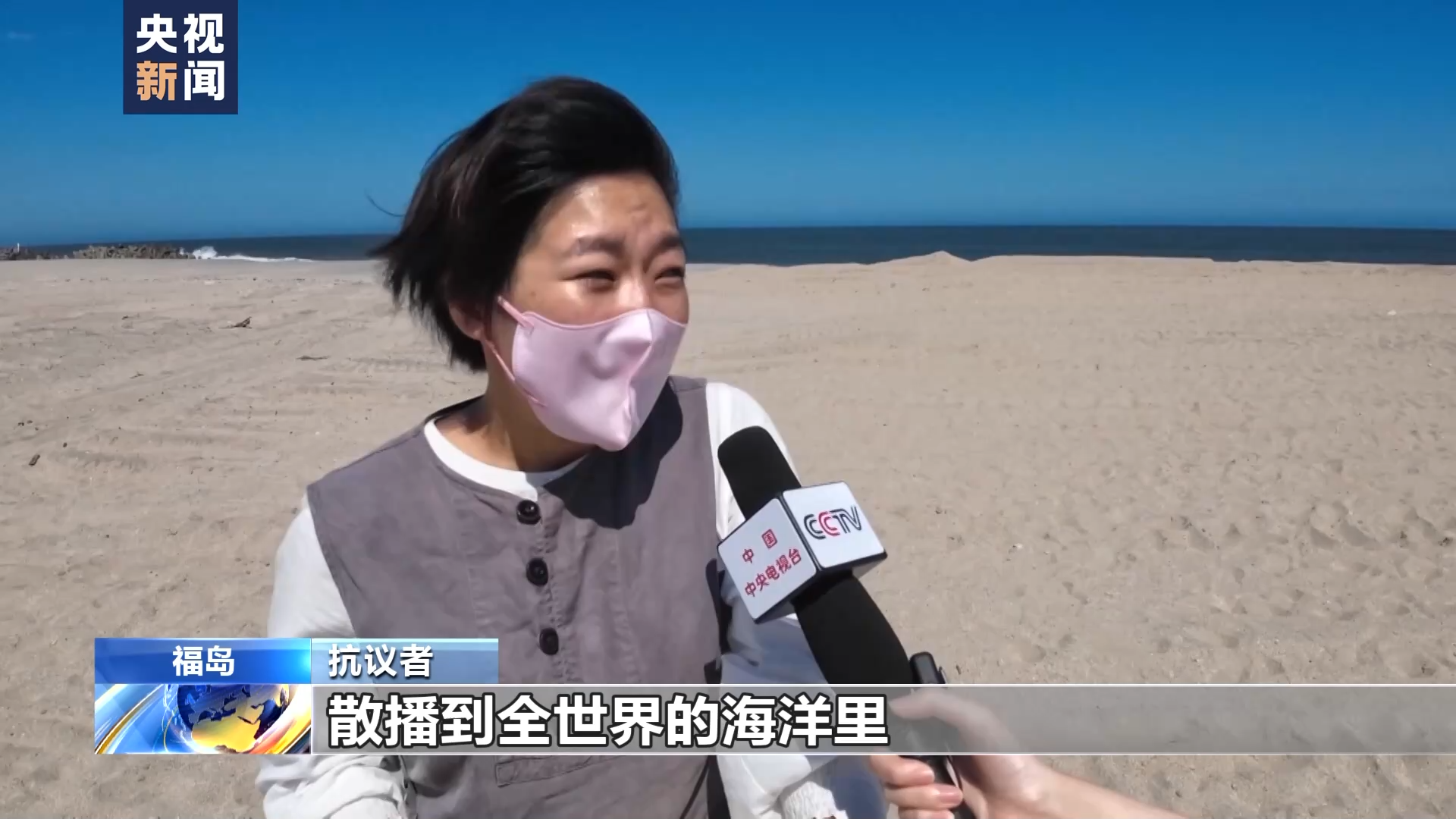 抗议者:把日本核事故产生的放射性物质散播到全世界的海洋里,这是绝不可以的。我认为这是对环境的破坏。