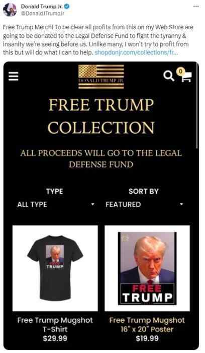 据报道,当天,小特朗普在社交媒体上写道,“很明显,我的网店销售这些产品的所有利润都将捐给法律辩护基金,以对抗我们眼前的暴政和疯狂。与许多人不同,我不会试图从中获利,而是会尽我所能提供帮助。”