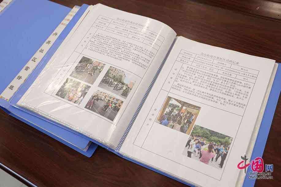 图为丹英社区活动记录。多年来,丹英社区依托民族团结工作促进创业就业、矛盾调解、普法宣传、为老服务等各项社区重点工作,中国网记者 伦晓璇 摄
