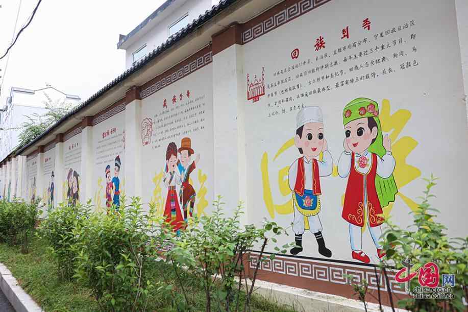丹英社区有汉族、朝鲜族、回族、满族、藏族、瑶族、锡伯族、景颇族、蒙古族等9个民族,图为在丹英社区墙上,绘有社区内各民族的介绍。中国网记者 伦晓璇 摄