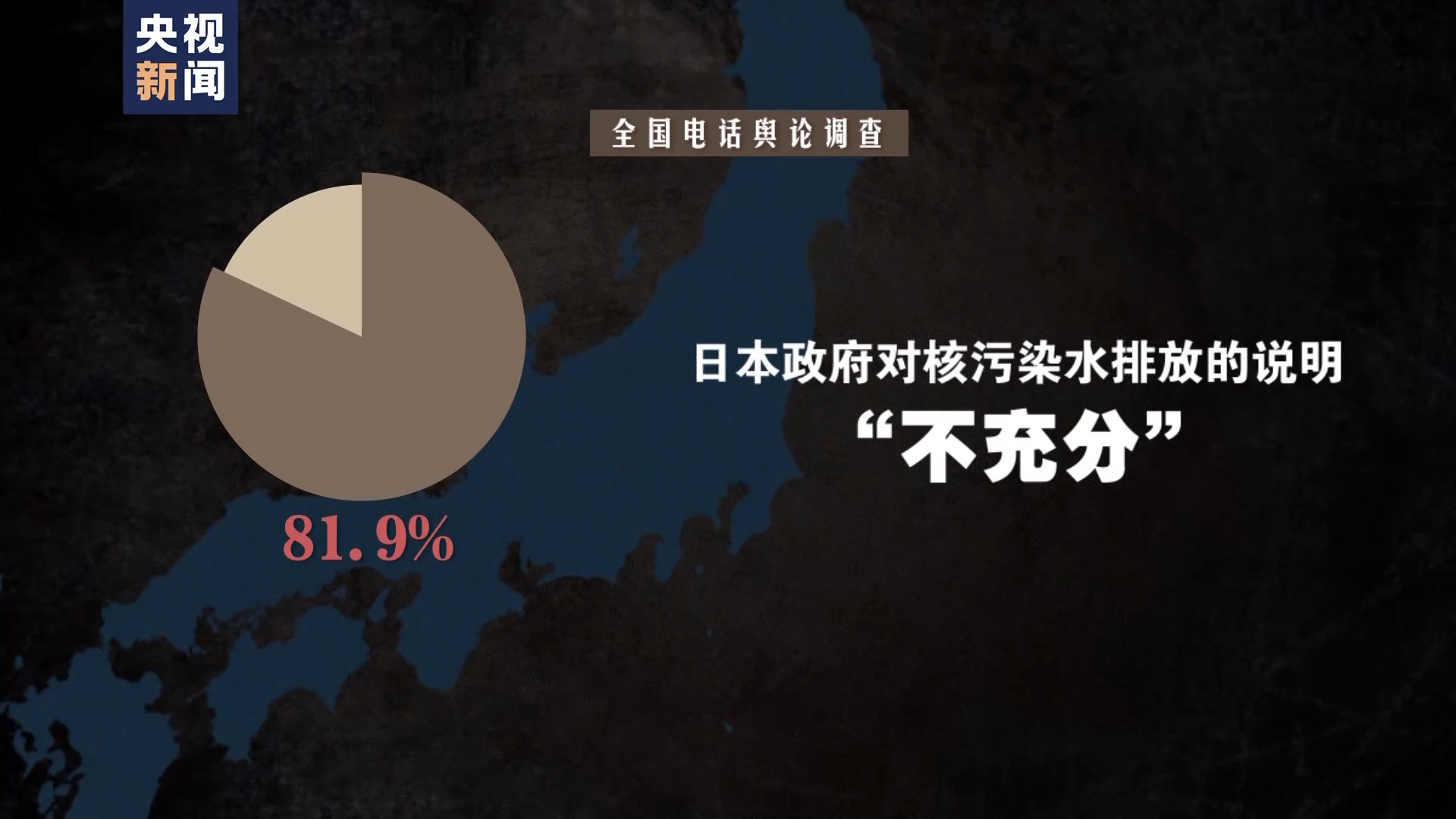 据日本共同社在8月19日至20日进行的全国电话舆论调查,81.9%的受访者认为,日本政府对核污染水排放的说明“不充分”,赞成排放的受访者仅占29.6%。