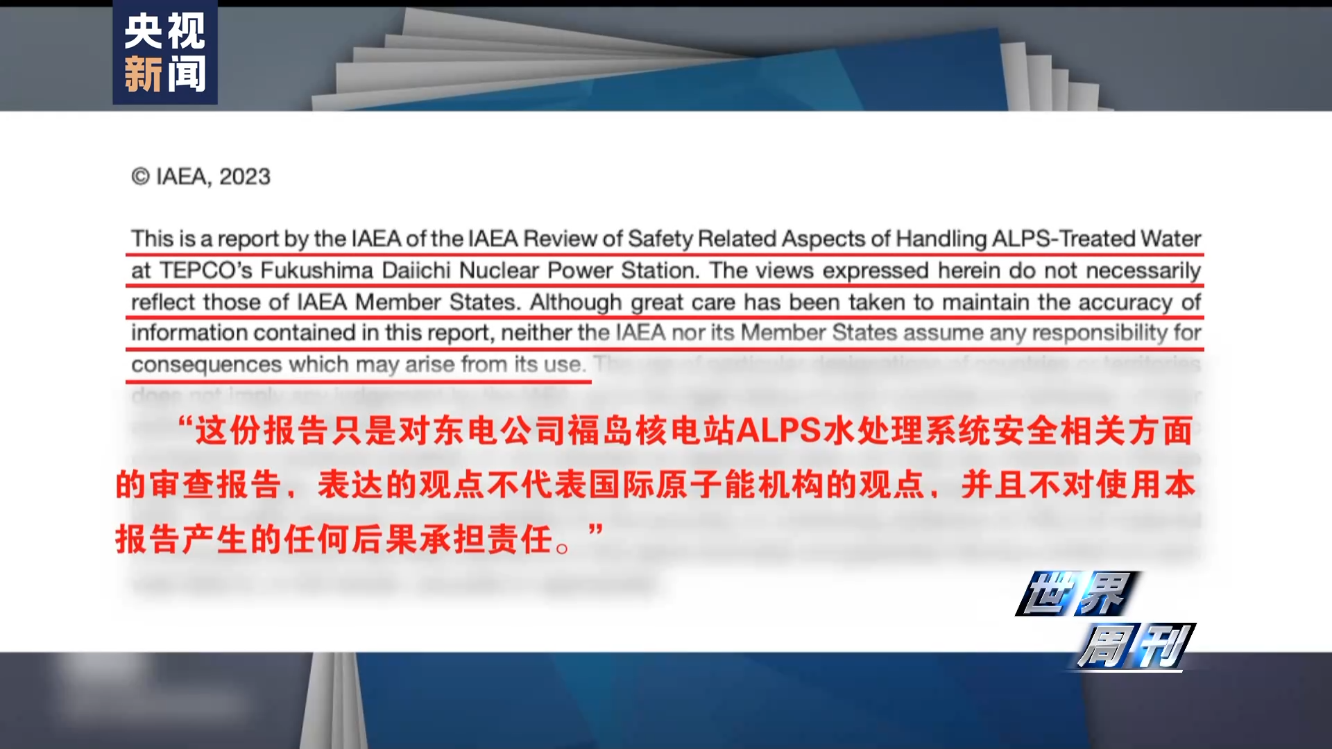 7月4日,国际原子能机构IAEA向日本政府递交了关于福岛第一核电站核污染水处理系统(ALPS)的综合评估报告,在前言部分,国际原子能机构明确表示:“这份报告只是对东电公司福岛核电站ALPS水处理系统安全相关方面的审查报告,表达的观点不代表国际原子能机构的观点,并且不对使用本报告产生的任何后果承担责任。”