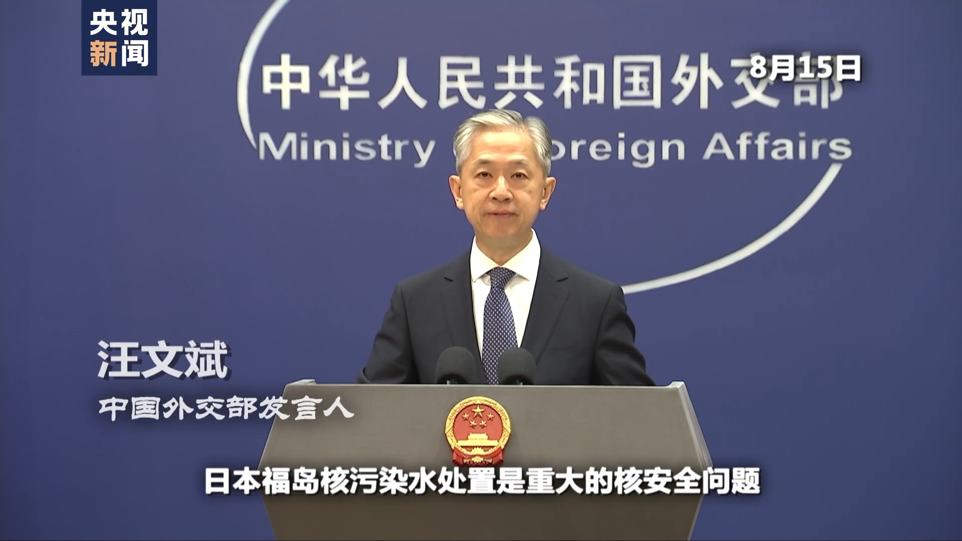 中国外交部发言人 汪文斌:日本福岛核污染水处置是重大的核安全问题。具有跨国界影响,绝不是日本一家的私事。自人类和平利用核能以来,人为向海洋排放核事故污染水没有先例,也没有公认的处置标准。12年前发生的福岛核事故已经造成严重灾难,向海洋释放了大量的放射性物质。日方不应出于一己之私利,给当地民众乃至世界人民造成二次伤害。