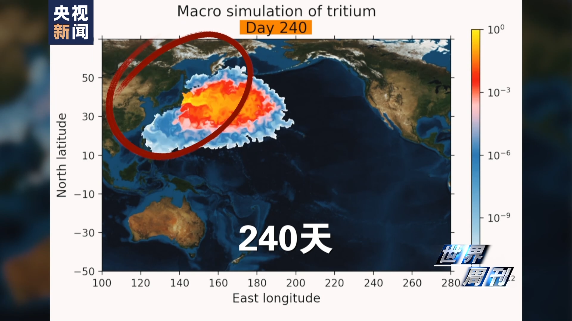 清华大学的核污染水排海扩散模拟结果表明,核废水在排放后240天就会到达我国沿岸海域,1200天后将到达北美沿岸并覆盖几乎整个北太平洋。随后,污染物一边在赤道洋流的作用下沿着美洲海岸向南太平洋快速扩散,另一边通过澳大利亚北部海域向印度洋转移。预计10年后核污染水会蔓延到达全球海域,对鱼类迁徙、远洋渔业、生态安全等方方面面都会造成影响。