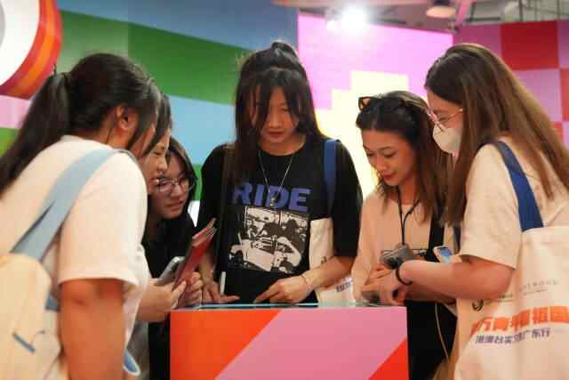 港澳台大学生参观艺术展览并进行互动体验。