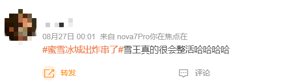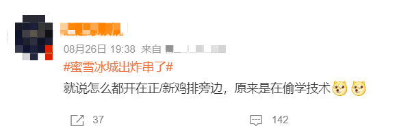 “雪王进军炸串”、“蜜雪冰城出炸串了”等相关话题引发网友热议,有网友看到菜单后感叹炸串“跟奶茶一样便宜实惠”。还有网友调侃“蜜雪冰城,新一代卷王”,“果然没有白白在正新鸡排旁呆这么多年”。