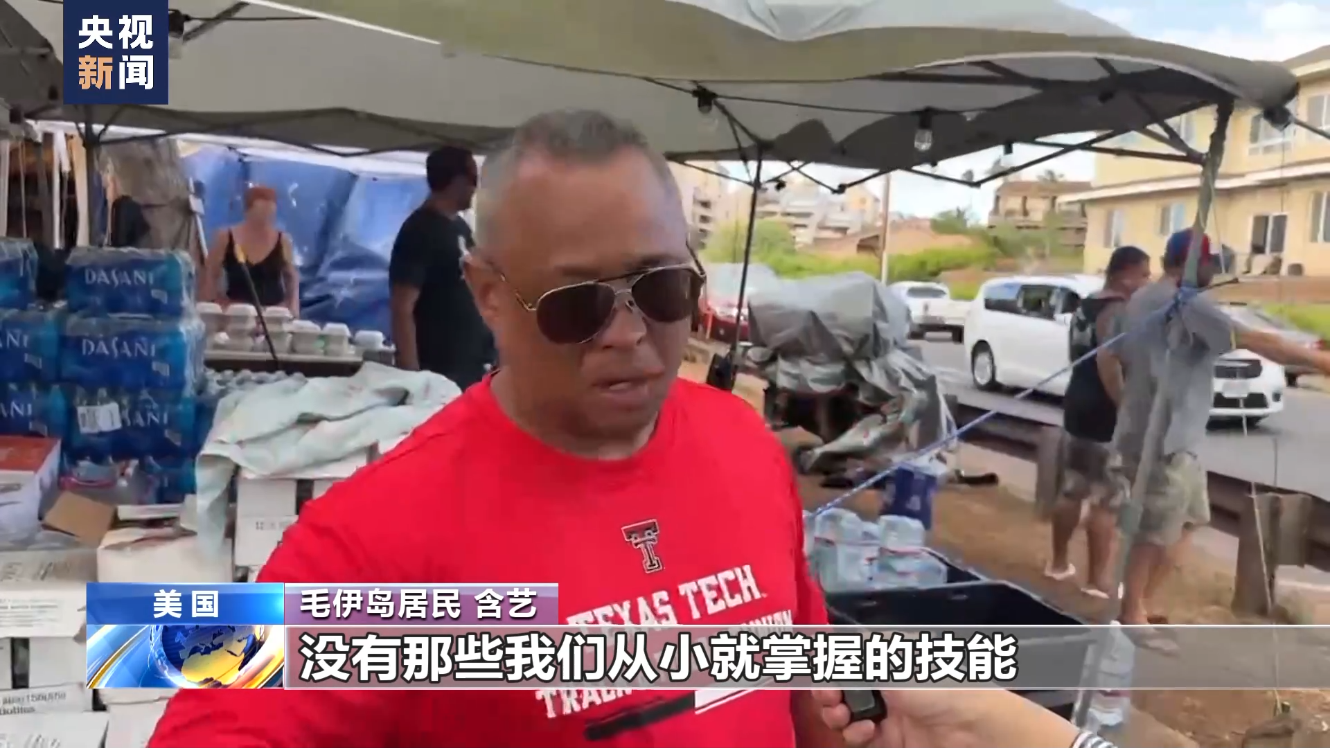 毛伊岛居民 含艺:我们知道政府会很慢,我们就自己照顾自己,作为夏威夷人,我们知道可以照顾好自己。但这里有很多人没有那些我们从小就掌握的技能,还有很多老年人,也没有能力做太多工作,所以我们要照顾他们,我们准备了罐头、饮用水、每天的热餐。