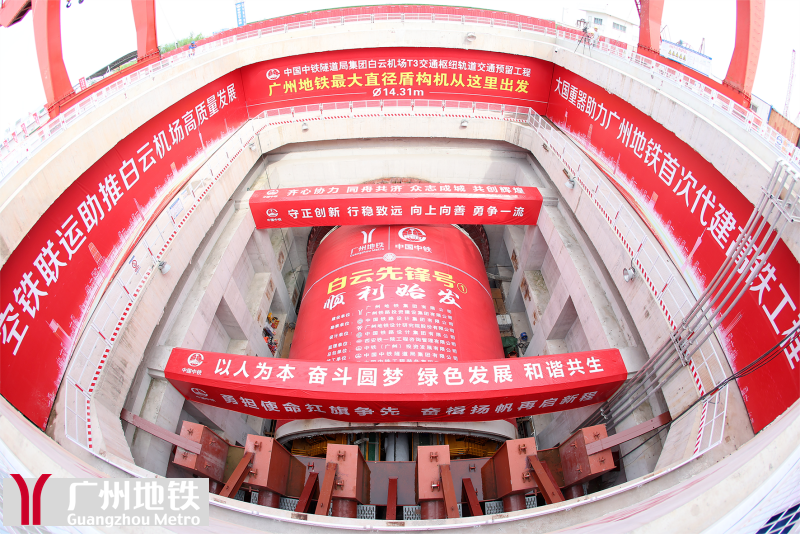 在白云机场T3交通枢纽轨道交通预留工程广珠(澳)高铁盾构始发井顺利始发。