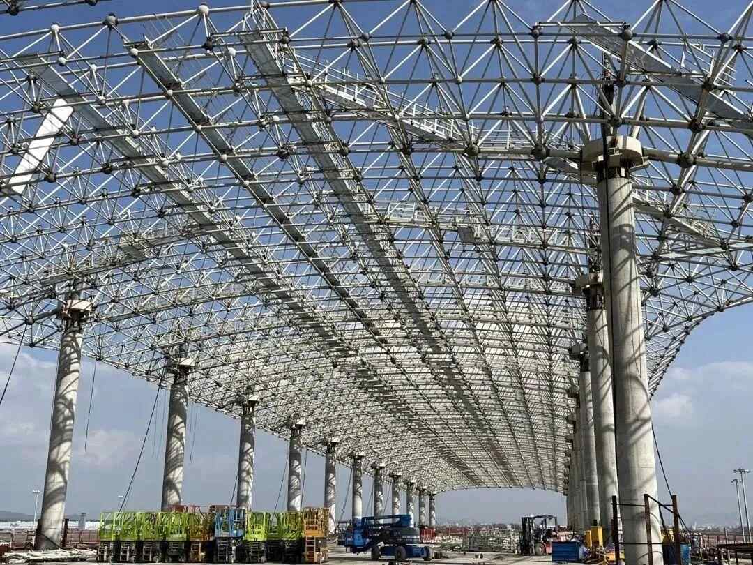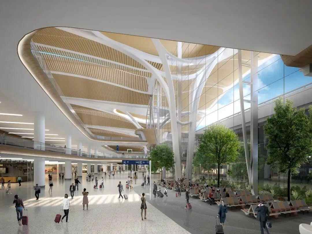 连接T1、T2航站楼的东四西四指廊钢网架结构完成整体提升,计划于2024年1月1日启用。