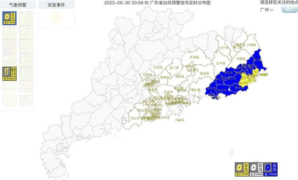 随着“苏拉”进一步移近,不排除广东其他地方也进一步升级台风预警信号。