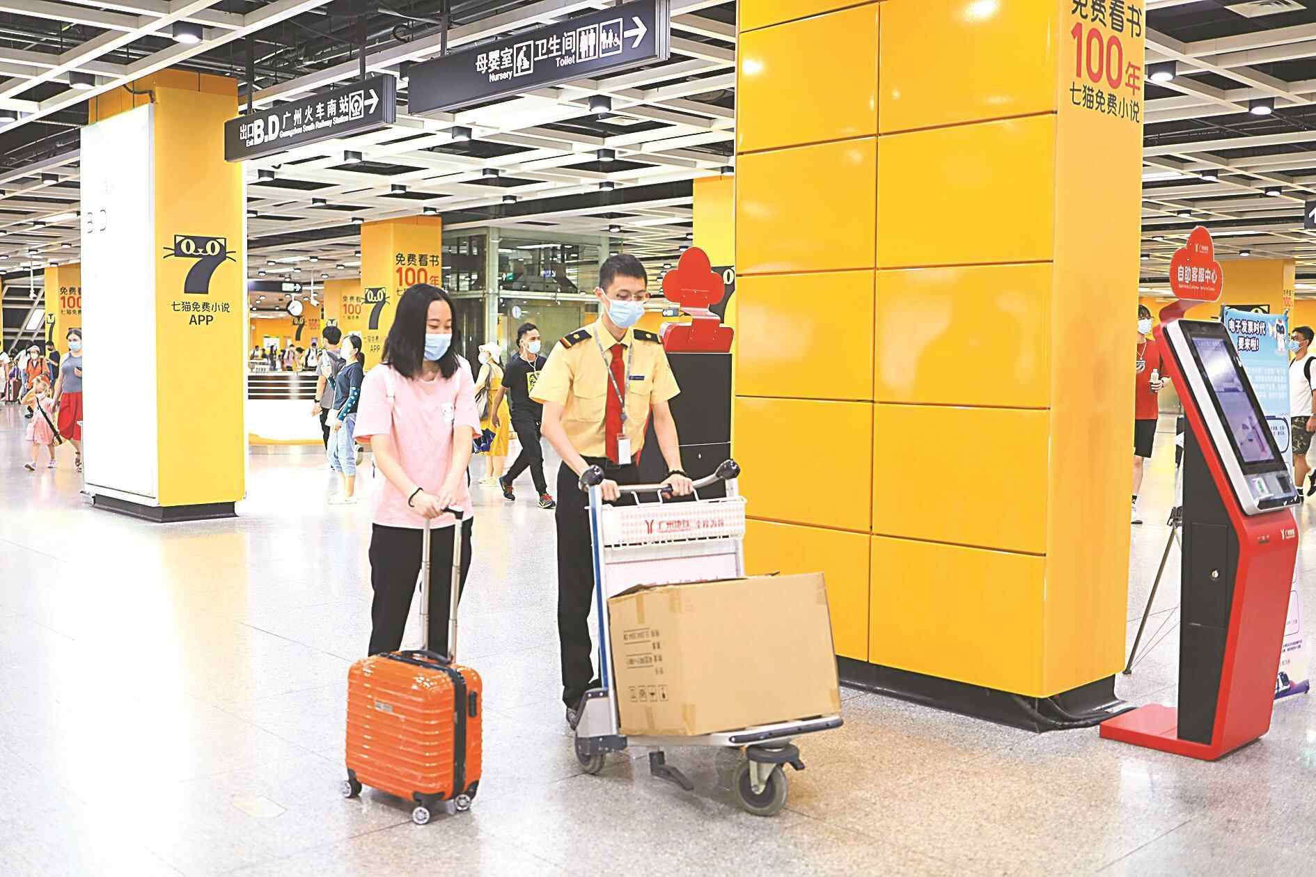 广州地铁介绍,广州地铁将在邻近客运枢纽和院校集中的广州南站、广州火车站、机场北站、大学城北站、大学城南站等5个重点车站设置“新生驿站”,推出系列“定制服务”:设置爱心手推车、尼龙绳、封箱胶、针线包等实用工具,为学子提供专属行李打包、运送服务;针对广州气候多变的特点,驿站配备了药箱、便民雨伞雨衣、防水鞋套等物资,满足乘客不时之需。