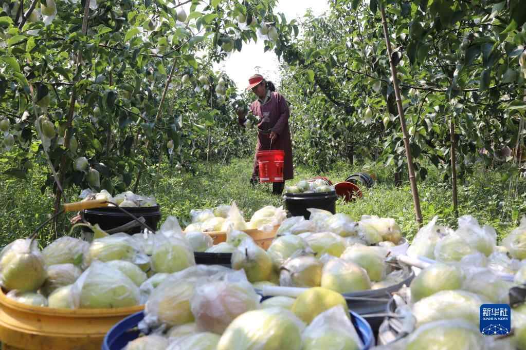 8月30日,果农在河南省焦作市温县番田镇王太保村采收酥梨。
