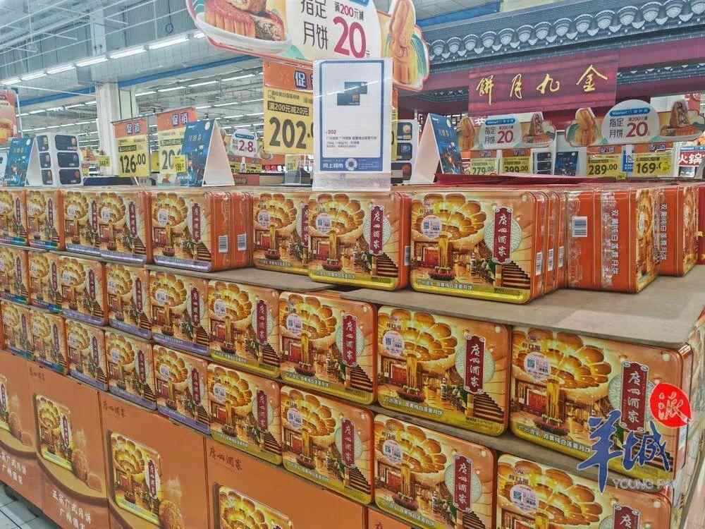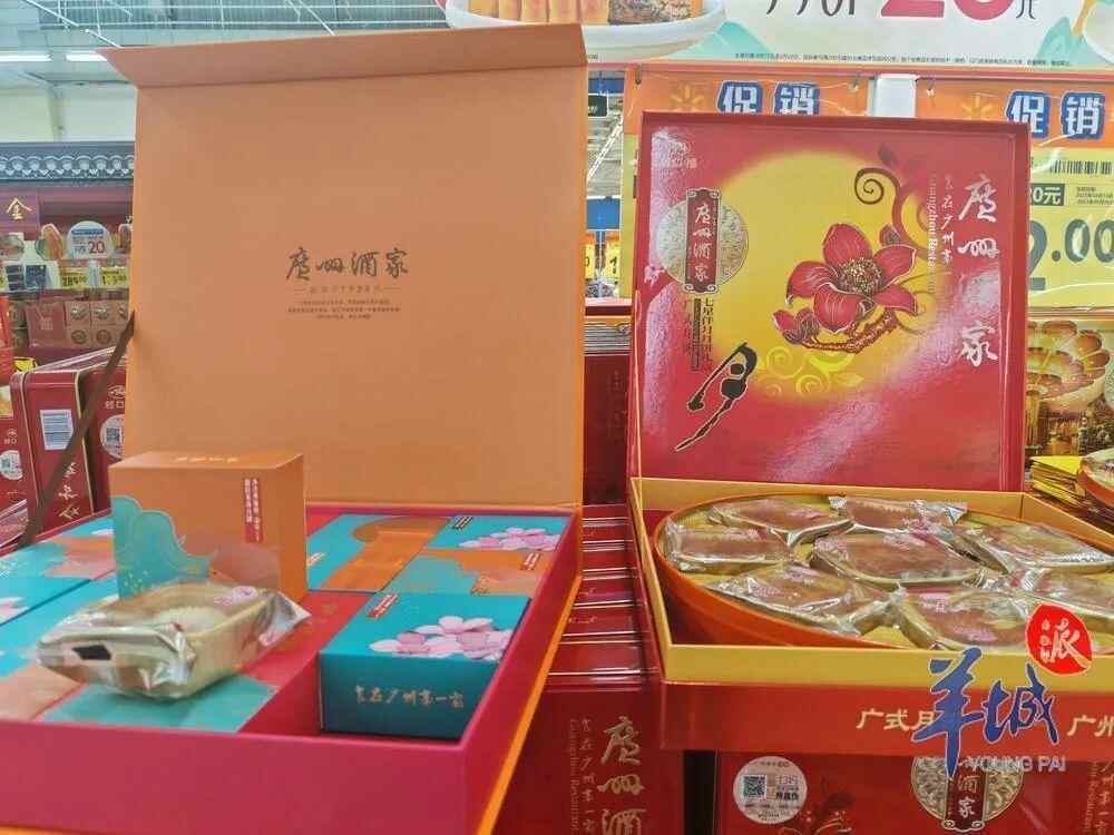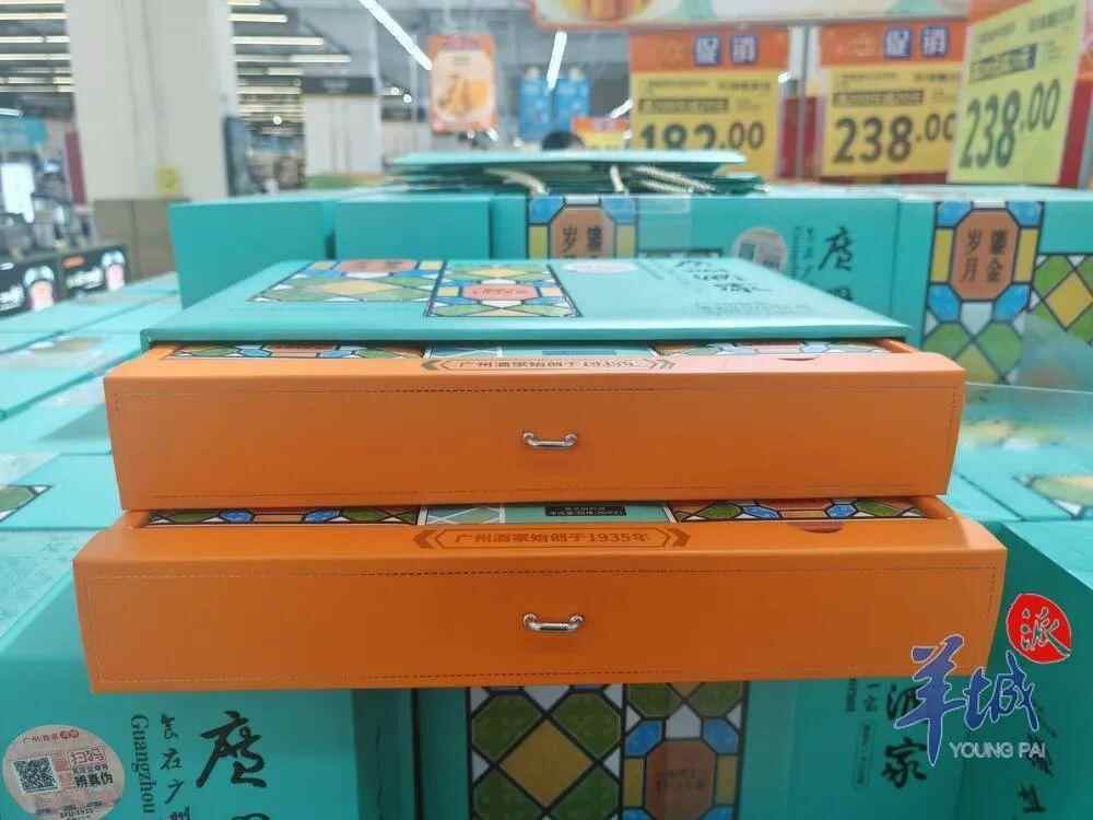 8月30日下午,羊城晚报全媒体记者走访沃尔玛等广州大型商超发现,广州酒家、美心、荣华、陶陶居等各大品牌月饼已抢“鲜”上市,放在显眼位置。货架上的月饼礼盒包装多为两到三层,少量高档礼盒为四层,材质以纸盒、铁盒为主。
